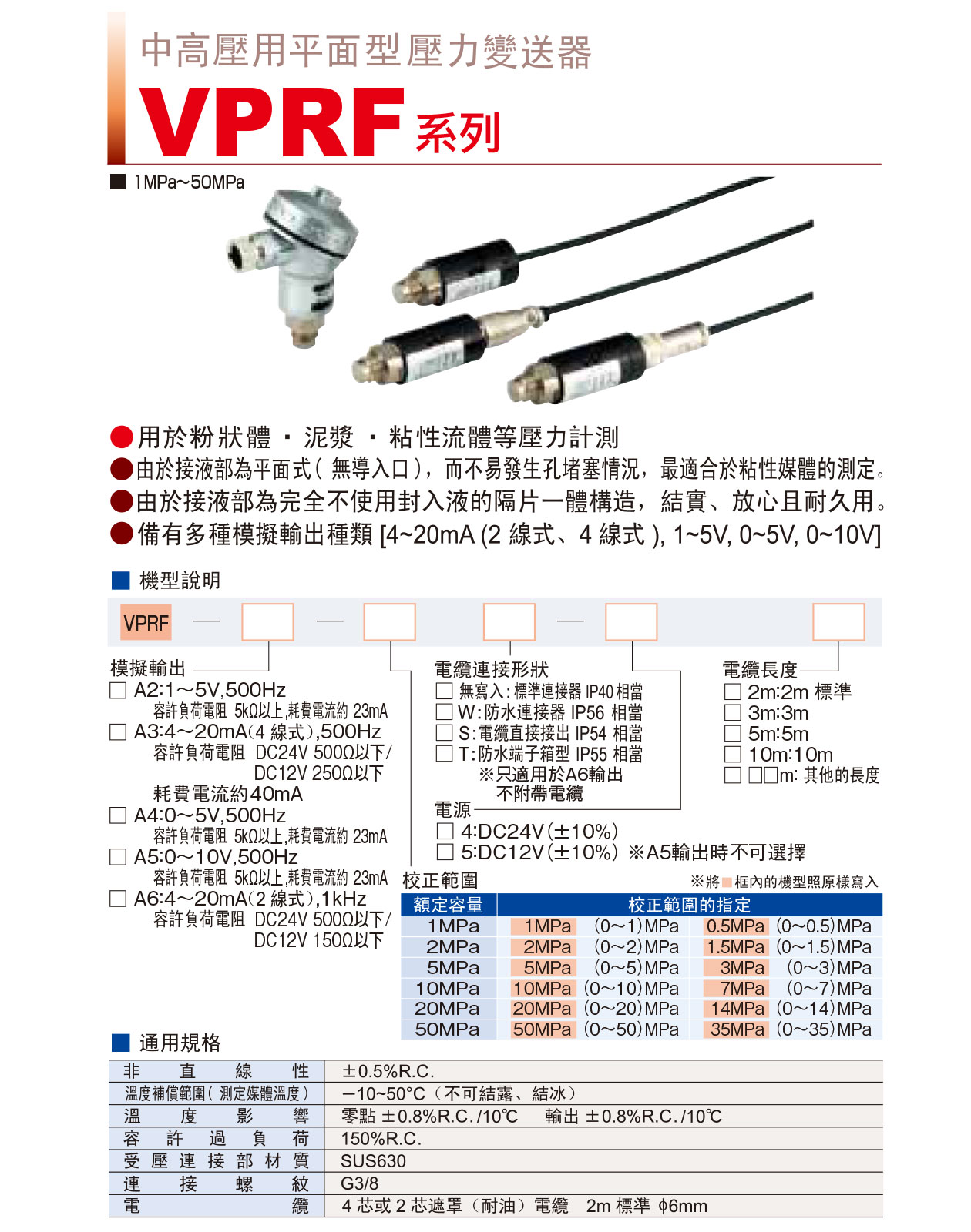 VHR3 ( G3 )系列:50kPa~700kPa/50kPa abs~700kPa abs