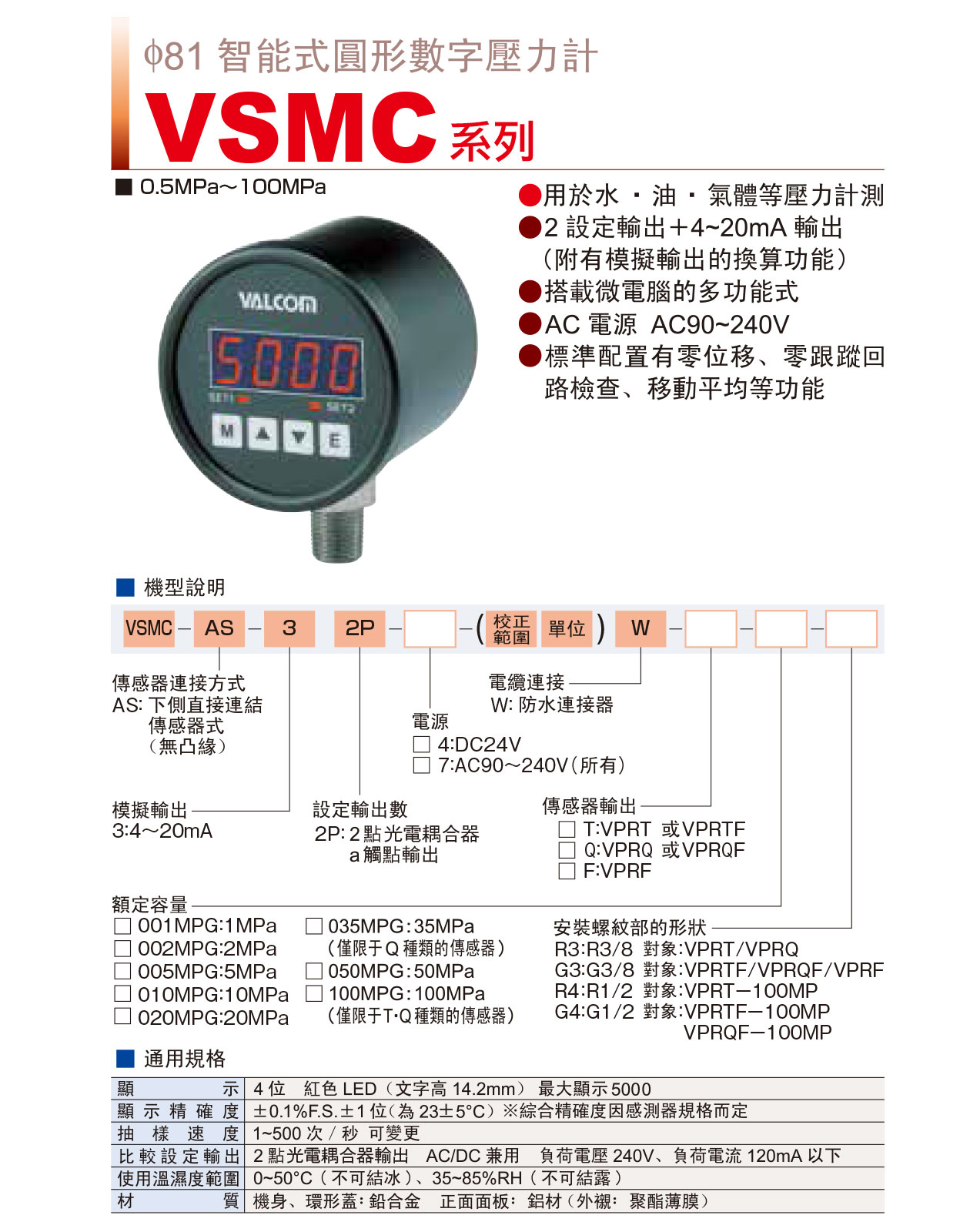 VSMC系列:0.5MPa~100MPa